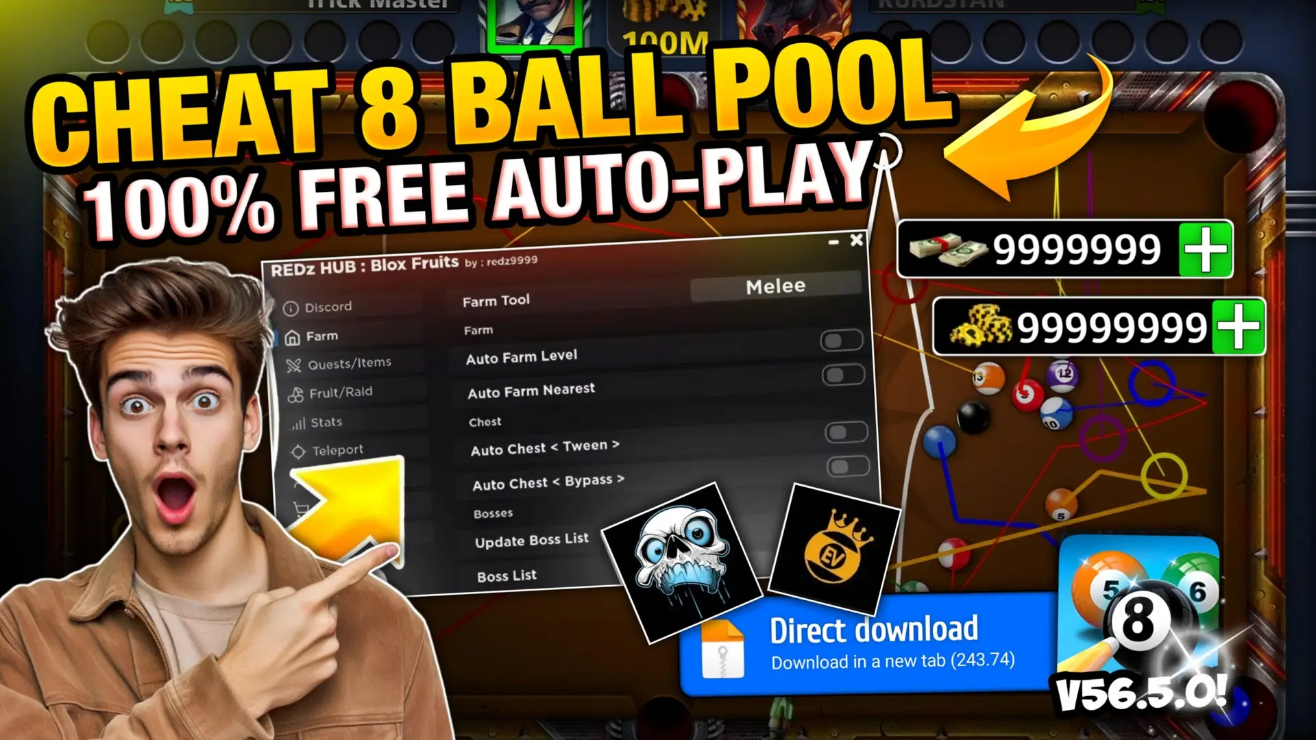 Mod Features Aim Line Auto-play & Lots of Coins