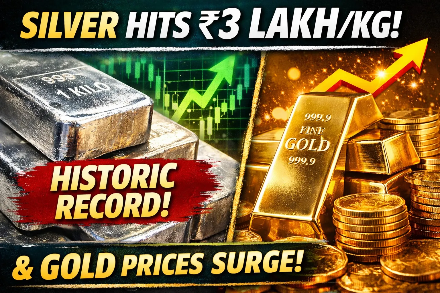 As soon as trading opened, silver futures jumped by more than ₹13,000 in a single session, pushing the rate beyond ₹3,01,000 per kg — a lifetime high in Indian market history.