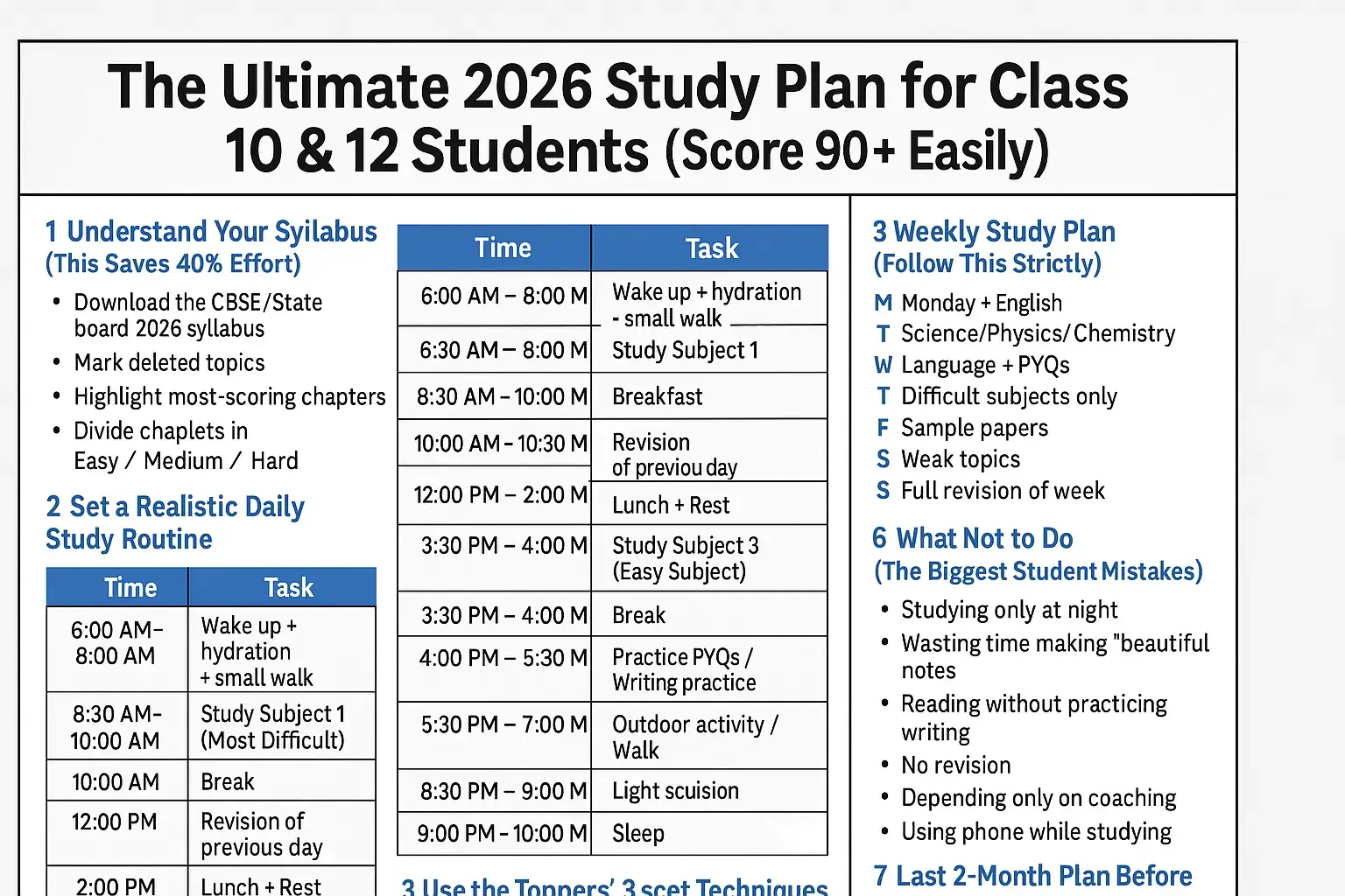 Preparing for the 2026 board exams can feel overwhelming, but trust me — with the right study plan, you can score 90+ without burning out.